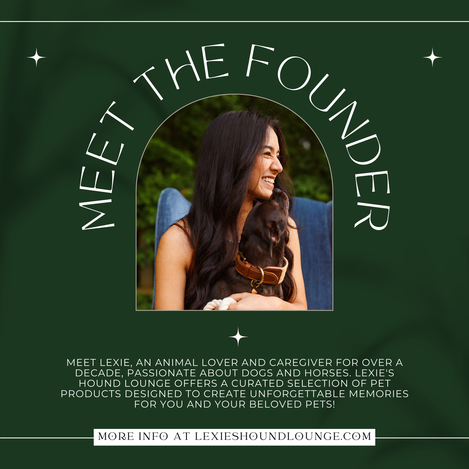 I’m Lexie Duncan, the proud founder of Lexie’s Hound Lounge. My love for animals has been the driving force behind everything I do. What began as a simple passion grew into a fulfilling career. Today, as a full-time veterinary assistant and small business owner, I’m dedicated to creating products and a shopping experience that celebrate the bond between humans and their beloved pets.